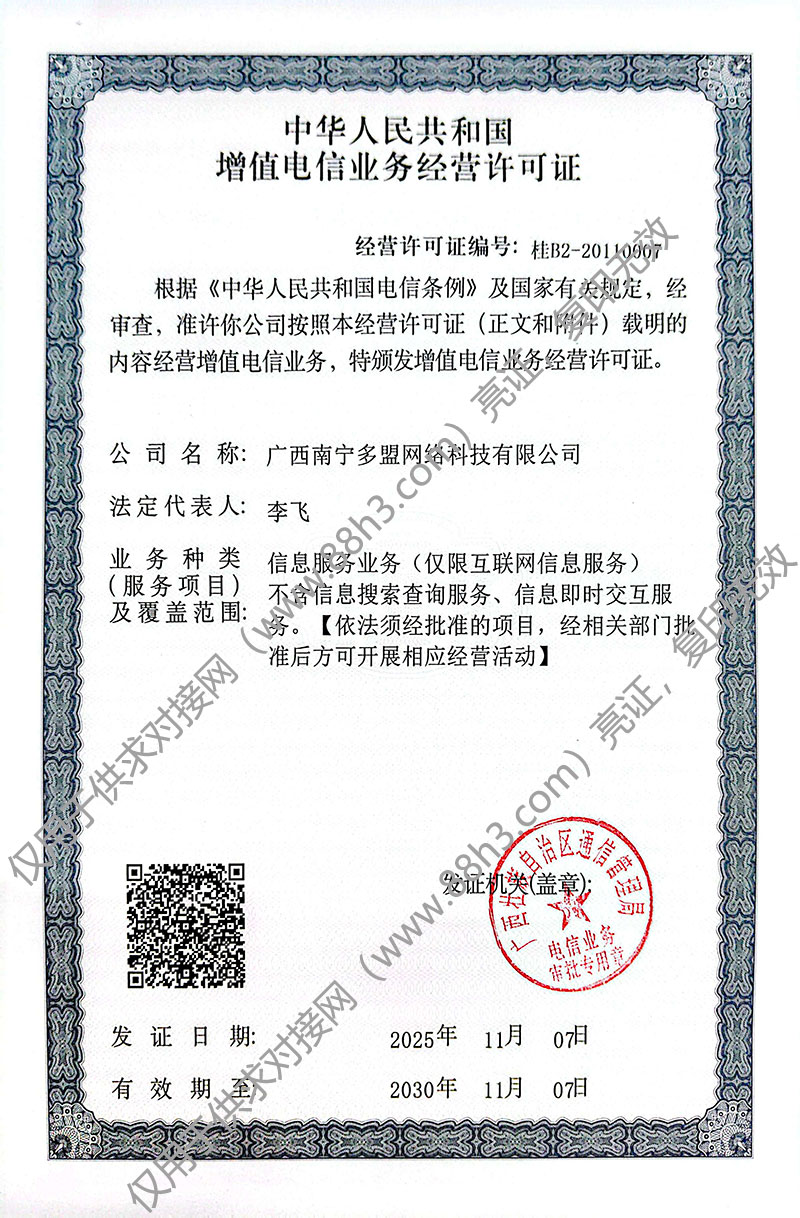 广西南宁多盟网络科技有限公司 具体负责88h3.com供求对接网全国农民的电子商务平台技术研发建设、日常运维、日常业务运营、电子商务培训推广